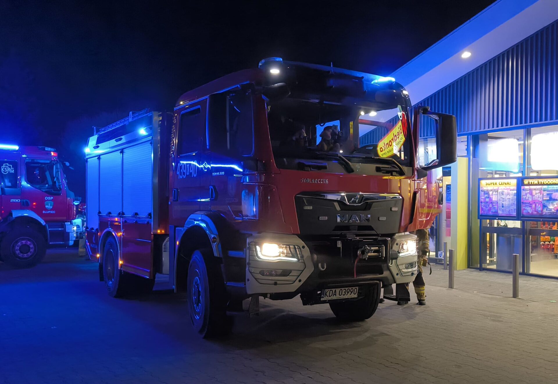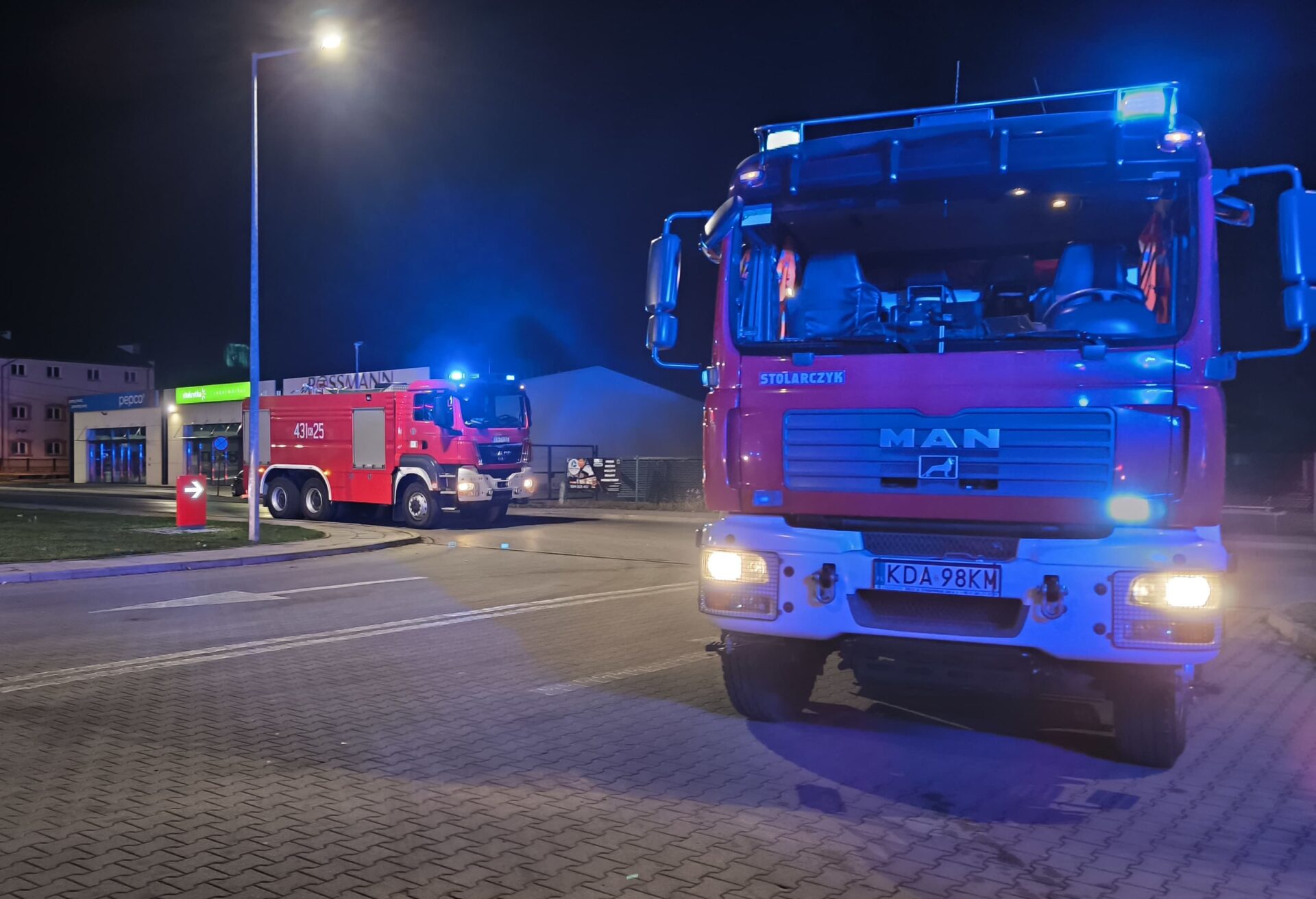 W dniu 6 listopada w godzinach nocnych zostaliśmy zadysponowani do zgłoszenia dotyczącego zadymienia w jednym z obiektów handlowo usługowych w Szczucinie na ul. Topolowej. Po przybyciu na miejsce zdarzenia i przeprowadzeniu wstępnego rozpoznania przez KDR z naszej OSP, stwierdzono brak widocznych oznak pożaru, jednak w części magazynowej budynku występowało niewielkie zadymienie. Z obiektu ewakuowano 6 pracowników oraz 2 klientów. Nasze działania polegały na dokładnym sprawdzeniu pomieszczeń z wykorzystaniem kamery termowizyjnej oraz miernika wielogazowego. Urządzenia nie wykazały obecności zagrożeń ani podwyższonych wartości niebezpiecznych substancji. W wyniku zdarzenia nie odnotowano osób poszkodowanych. W działaniach brały udział 2 zastępy OSP Szczucin(GCBA, GBARt), zastęp OSP Słupiec(GBA) oraz 3 zastępy JRG Dąbrowa Tarnowska( GBARt, SD, GCBA).